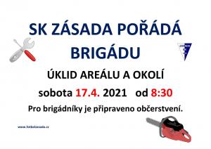 ÚKLID AREÁLU A OKOLÍ sobota 17.4. 2021 od 8:30. Pro brigádníky je připraveno občerstvení.
