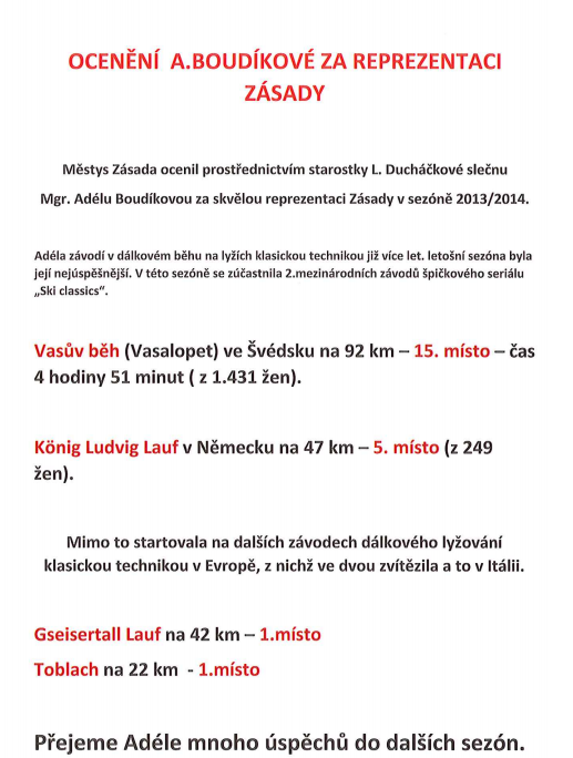 Ocenění Adély Boudíkové za reprezentaci Zásady