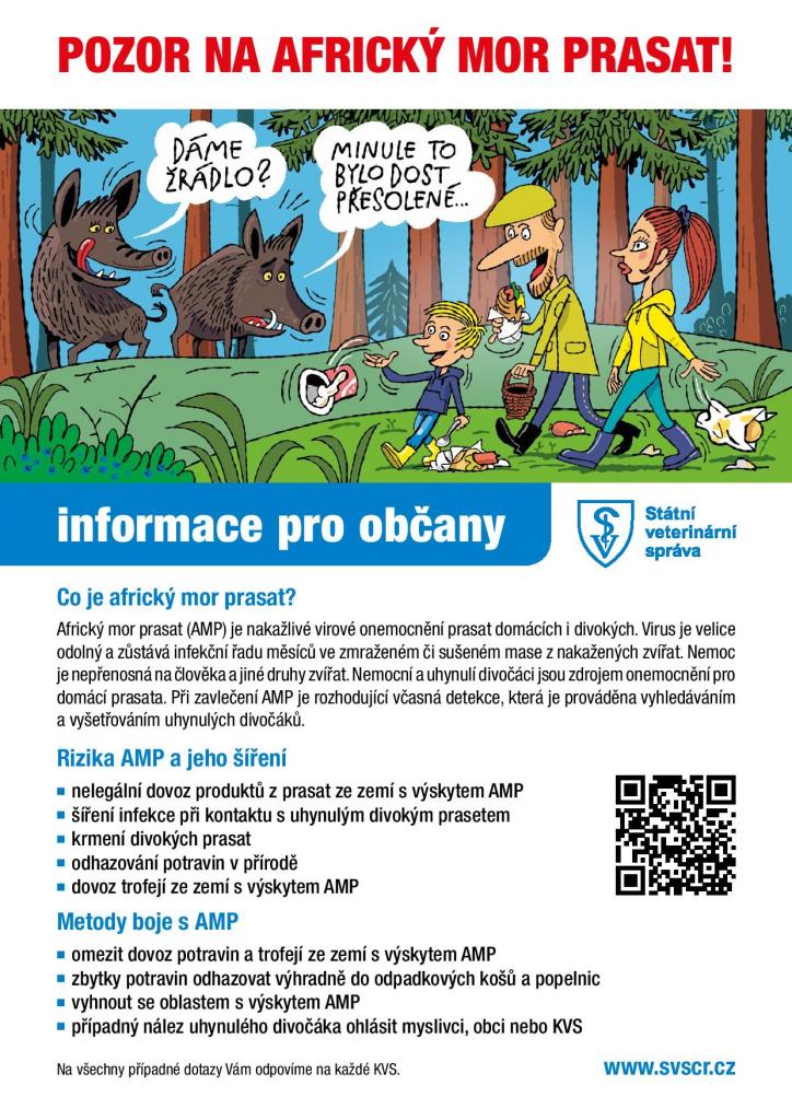 Africký mor prasat (AMP) je nakažlivé virové onemocnění prasat domácích i divokých. Virus je velice odolný a zůstává infekční řadu měsíců ve zmraženém či sušeném mase z nakažených zvířat. Nemoc je nepřenosná na člověka a jiné druhy zvířat.