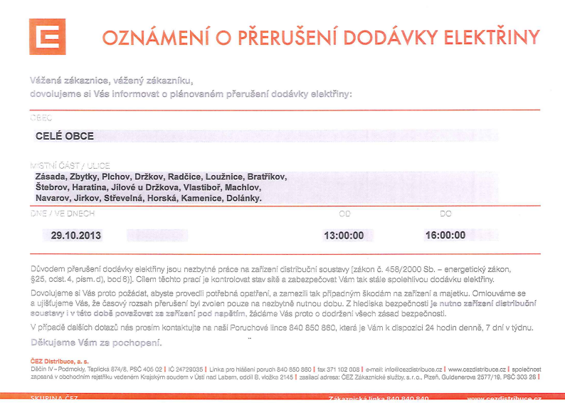 Přerušení dodávky elektrického proudu