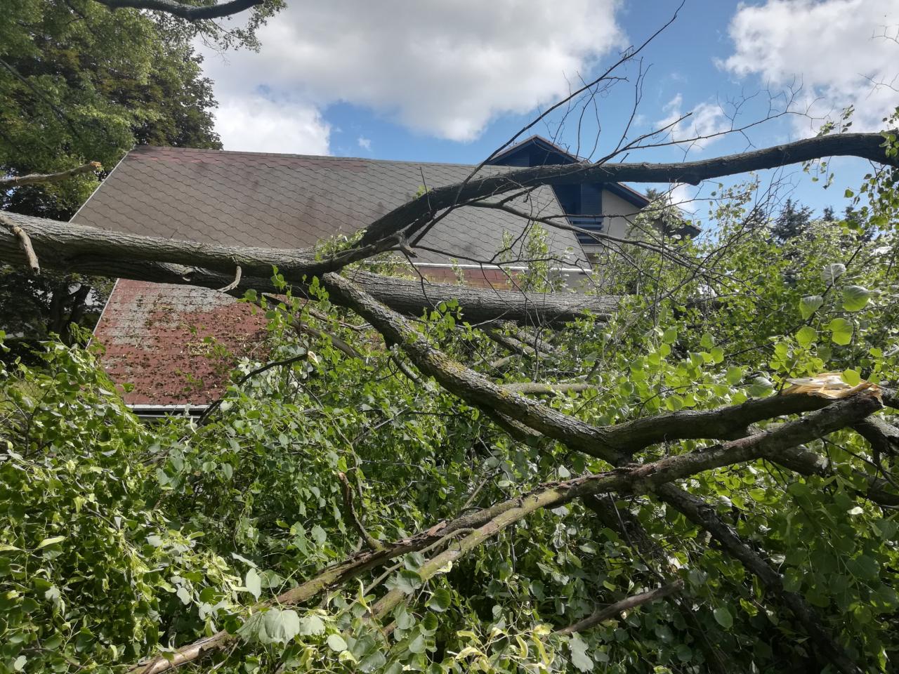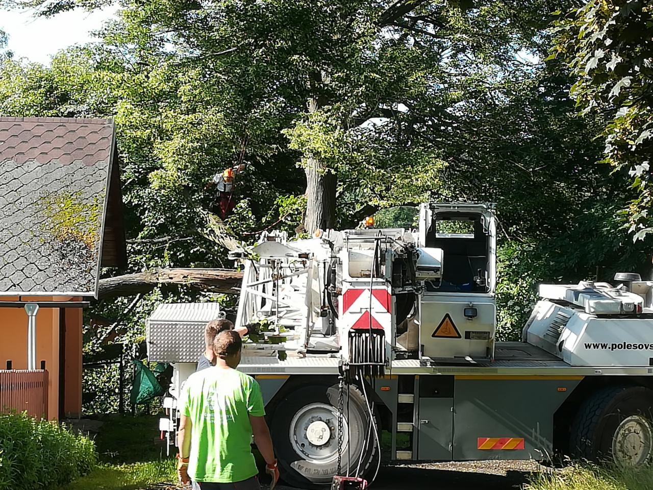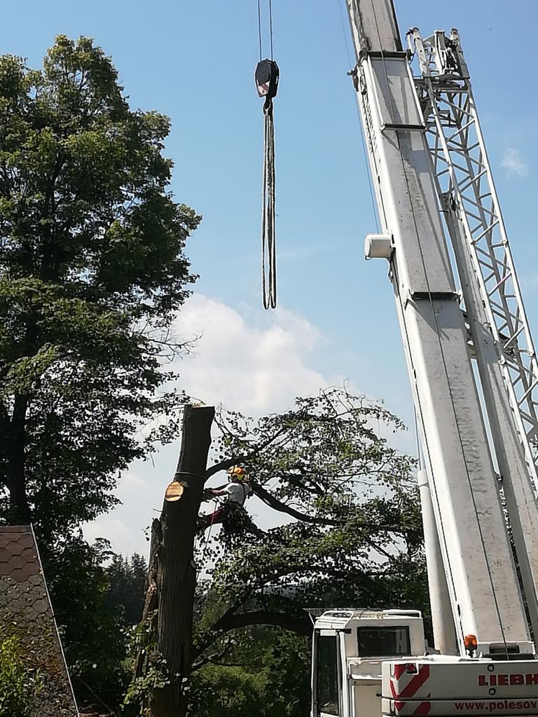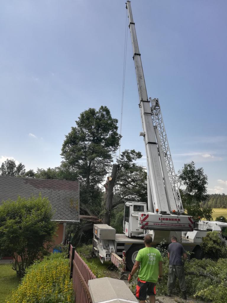 Kácení poškozené lípy