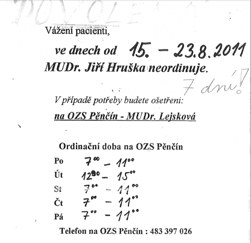 Aktuality - Dovolená v ordinaci MuDr. Hrušky