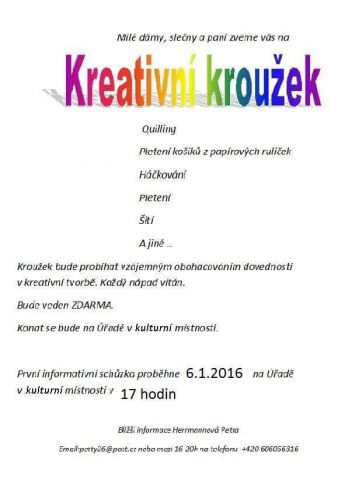 od 20.1.2016 na Úřadě v kulturní místnosti a to od 17 hodin