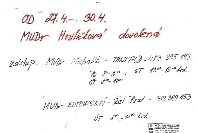Aktuality - MUDr. Hniličková - dovolená