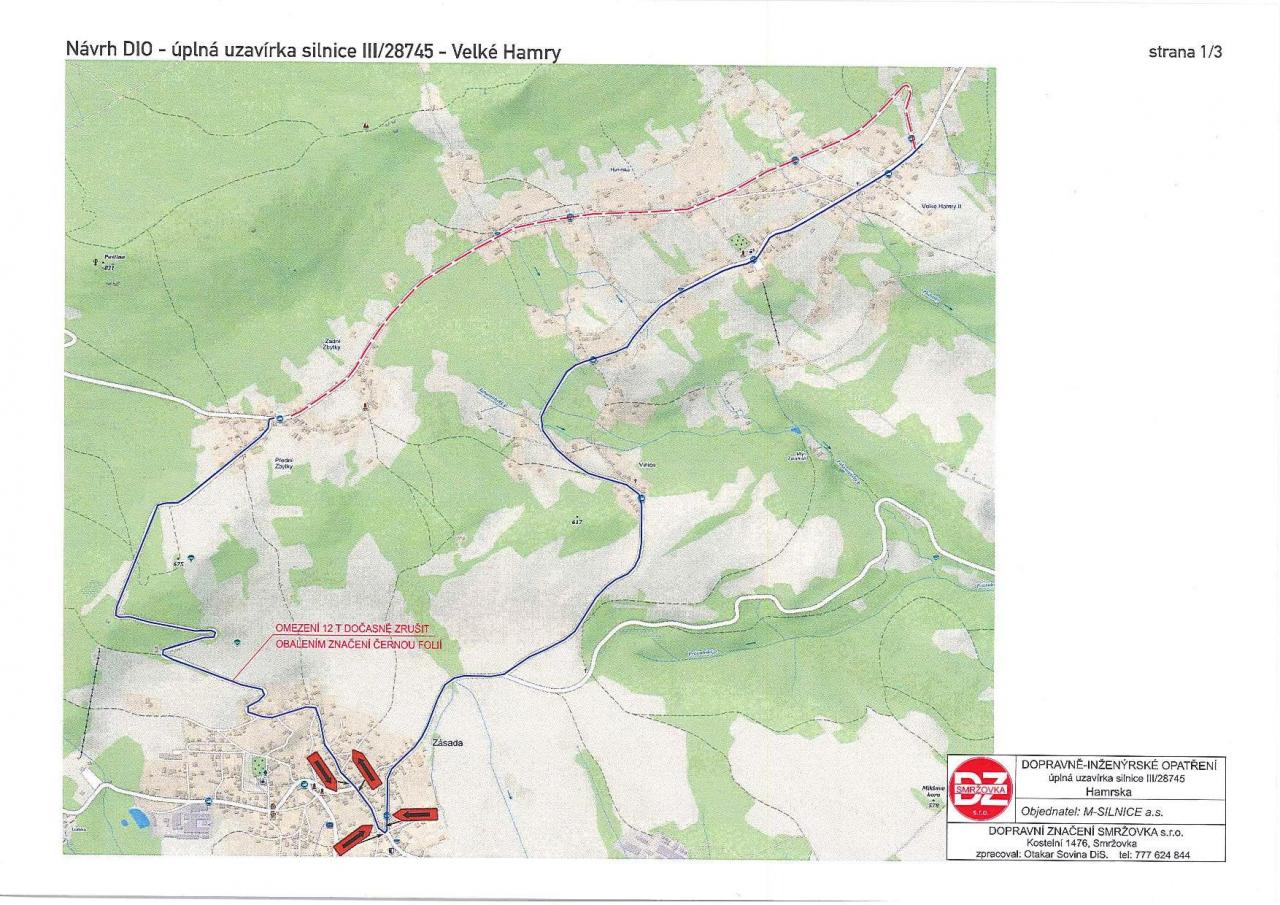 Od 15.6.2020 do 15.11.2020 bude úplná uzavírka komunikace č.III/287 45 Velké Hamry II-Zbytky z důvodu její rekonstrukce. Objízdná trasa povede přes Zásadu. Žádáme občany, aby v době uzavírky dbali zvýšené opatrnosti v celém úseku objízdné trasy.