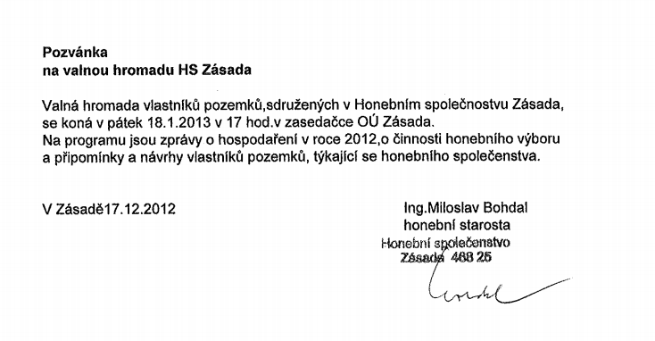 Aktuality - Pozvánka na valnou hromadu HS Zásada