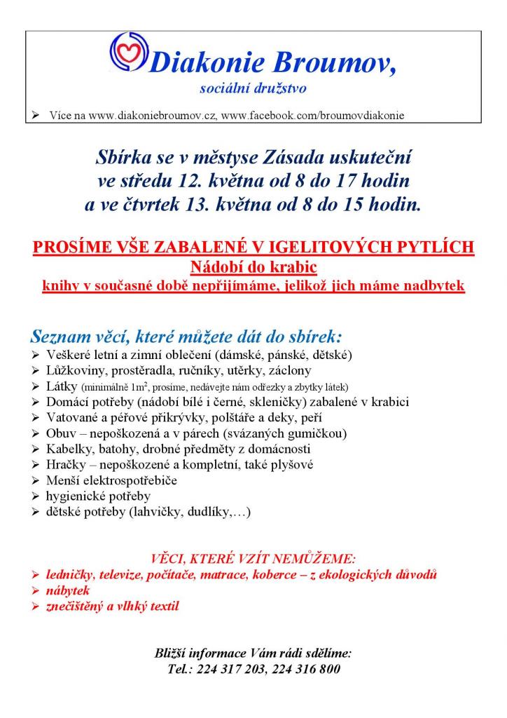 Aktuality - Sbírka Diakonie Broumov v Zásadě